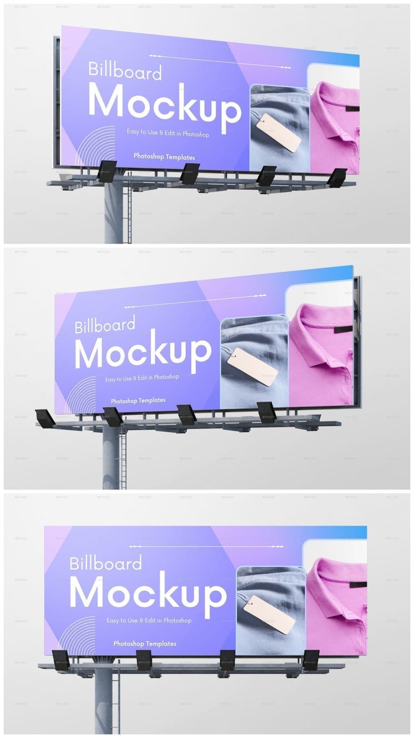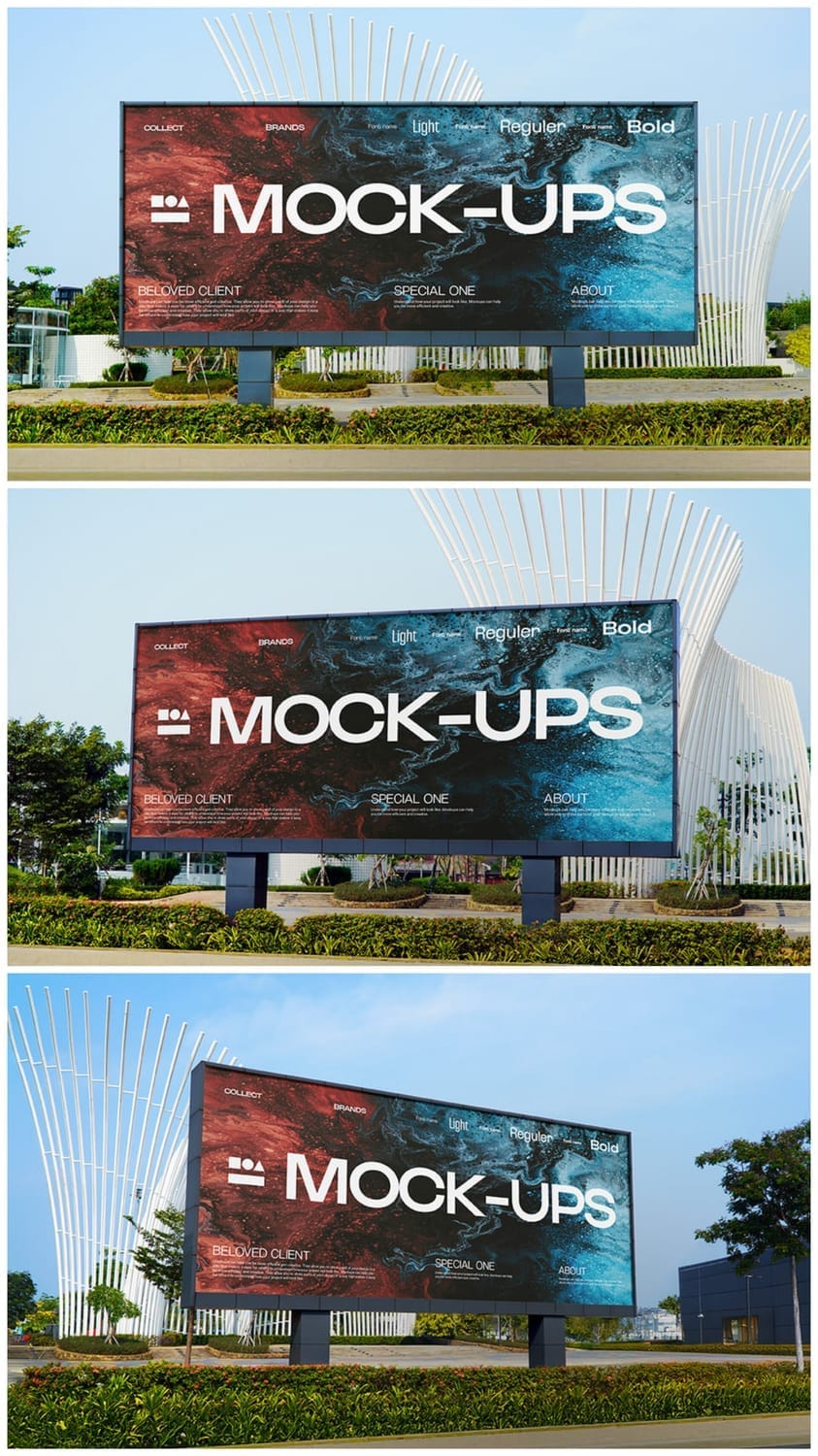 This comprehensive mockup pack offers a collection of files covering both standard and multi-sided outdoor advertising displays, giving designers maximum flexibility for presentations.