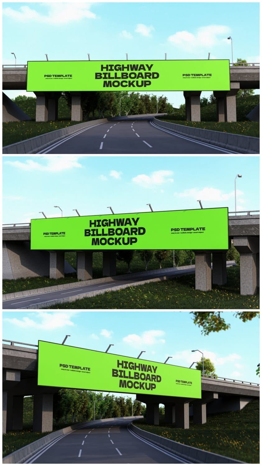 This Highway Overpass Billboard Mockup provides three distinct, high-impact perspectives of a billboard mounted underneath a concrete highway overpass. This setting offers a realistic, eye-level view for traffic-focused advertising presentations. The product includes three PSD files at a crisp resolution of 4000 x 3000 pixels at 300 DPI. Customizing the files is exceptionally easy thanks to the Smart Object layers—designers simply double-click the layer, paste their artwork, and save. A PDF Help File is also included for smooth workflow integration.