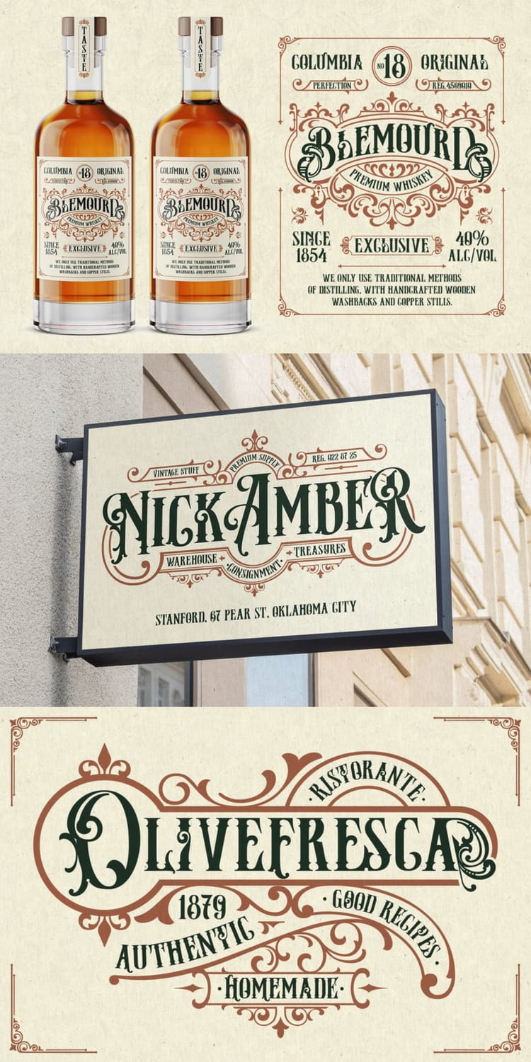 These defining traits are what make Victorian fonts such a powerful choice for logos, posters, packaging, and branding that aim to feel classic, dramatic, and timeless.