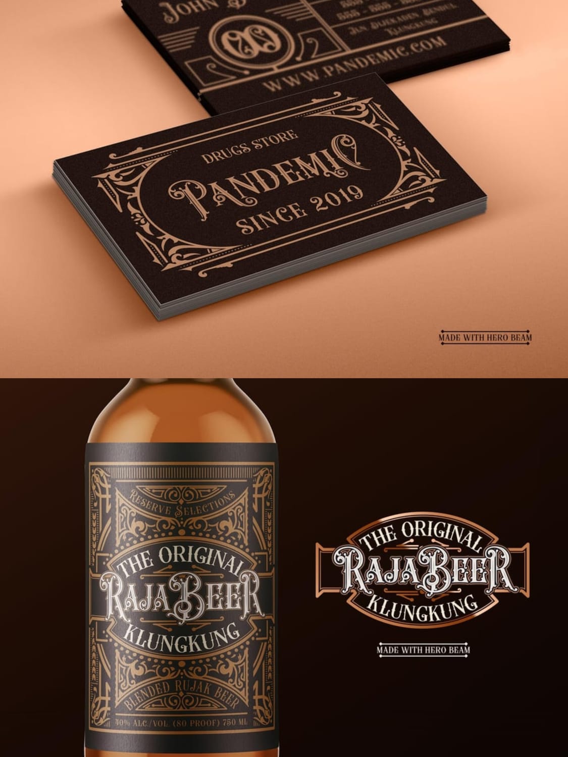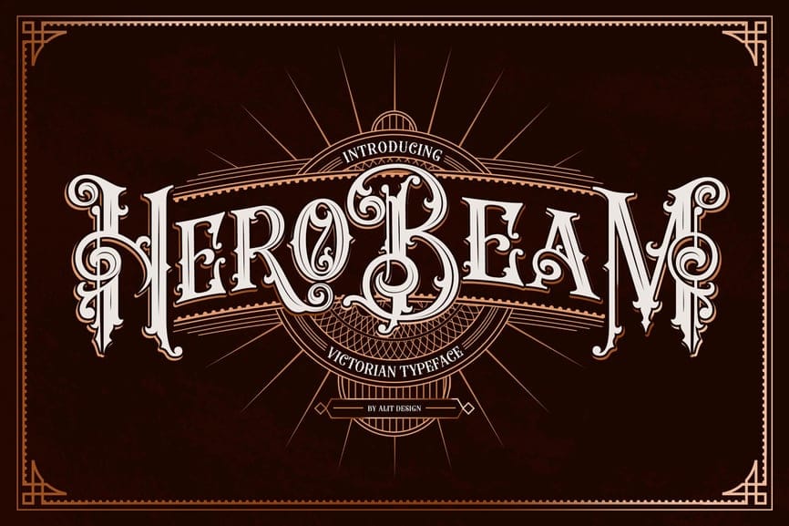 Herobeam is an ornate Victorian display serif with engraved detailing, decorative terminals, and dramatic ligatures. Its personality is bold, theatrical, and authoritative—perfect for designs that need a strong historical presence and visual impact.